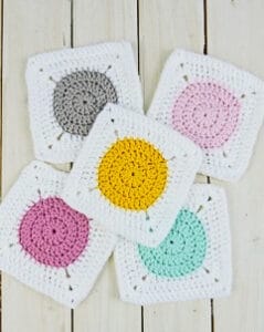 Iedere deelnemer krijgt materiaal waarmee je uiteindelijk een vierkantje gaat haken die als rondje begint de zogeheten granny square.